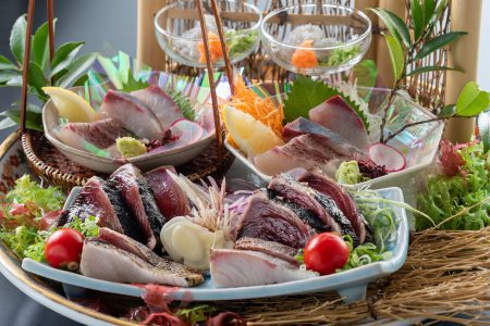 | 皿鉢料理 | 「土佐の鮮魚盛り合わせ」土佐鯛松皮 土佐勘八 どろめ 芽物一式 土佐醤油「土佐の黒潮の恩恵」鰹の藁焼きタタキ 鰤タタキ 薬味一式 ぬた味噌 タタキ酢 |