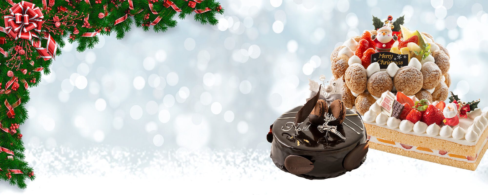 今年の城西館のクリスマスケーキは、定番・人気ナンバー1の生クリームケーキにチョコレートを使ったキャラメルショコラ。また、ブライダルで人気のクロカンブッシュもクリスマスバージョンで楽しめます。